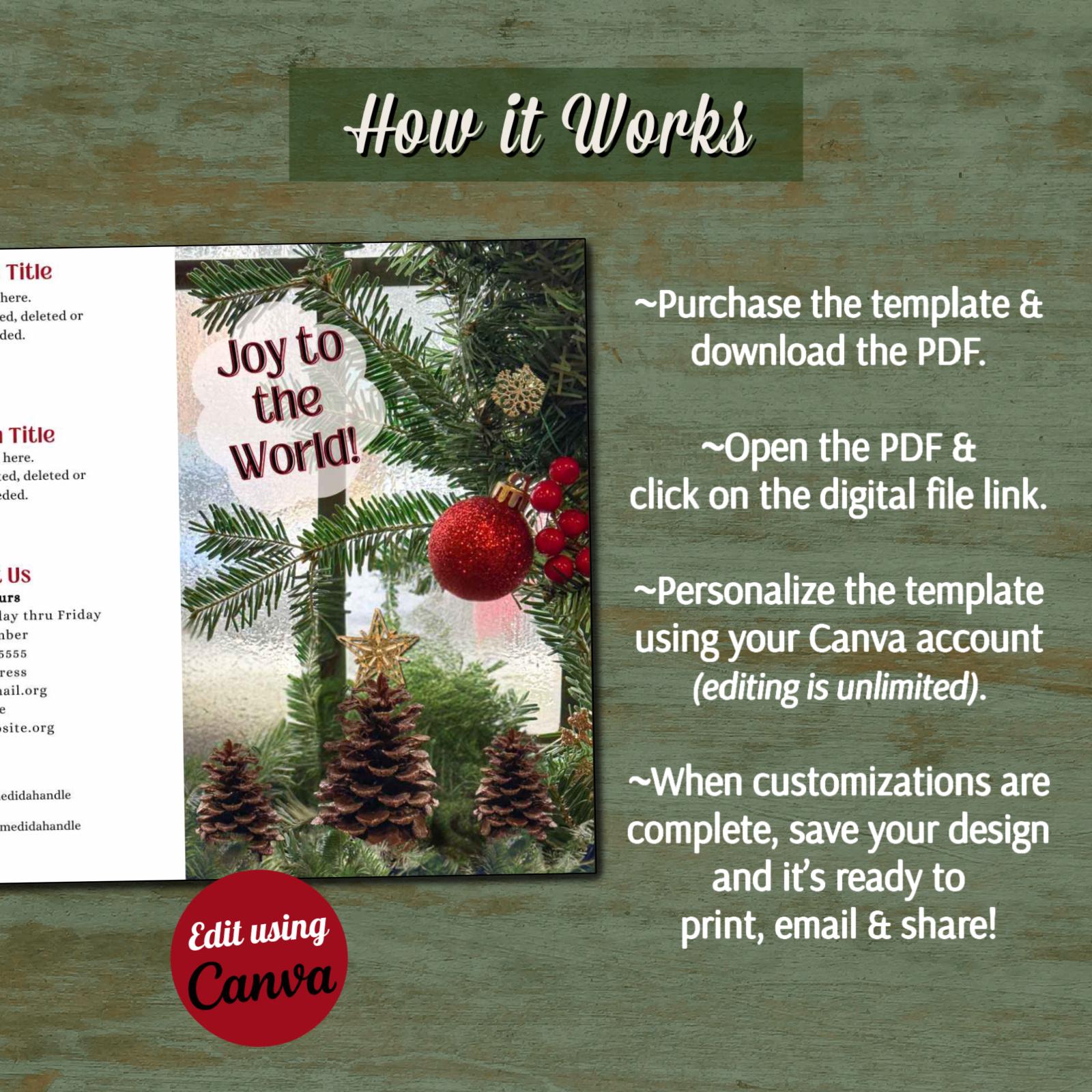 -Templates are customizable using Canva, a free online design tool. A desktop or laptop work best for editing.